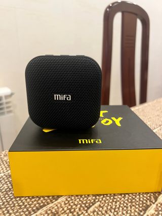 Altavoz portátil de la marca Mifa. - Diseño compacto y moderno. - Acabado en color negro.