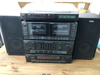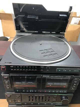 Equipo de sonido Hi-Fi completo, ideal para disfrutar de tu música. - Plato giradiscos. - Doble pletina de casetes. - Ecualizador gráfico. - Sintonizador de radio. - Altavoces. - Diseño elegante en color negro.