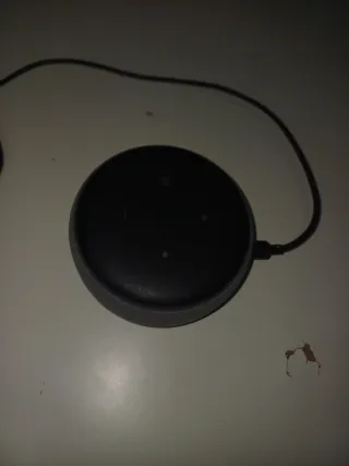 Altavoz inteligente de Amazon, compacto y con un diseño moderno. - Color negro y gris. - Cable de alimentación incluido. No es usado y por ese motivo lo vendo