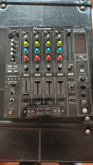 Mezclador profesional Pioneer DJM-800. - Cuatro canales. - Efectos de sonido integrados. - Crossfader. - Ecualizador de 3 bandas por canal.