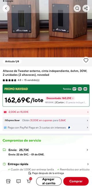 Tweeter de alta frecuencia de la marca Hous Audio. Diseñado para complementar tu sistema de sonido. - Acabado en madera de nogal. - Rejilla protectora negra. Lo vendo por falta de uso, solo compre uno para probar y le da a la zona alta otra sutileza. Actual mente tengo otros altavoces y no lo necesito.