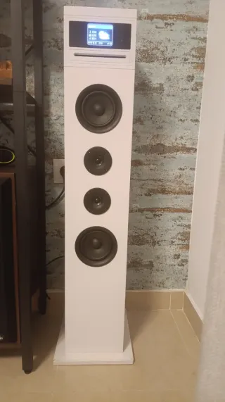 Altavoz de torre con un diseño elegante y moderno. - Acabado en color blanco. - Múltiples altavoces para una experiencia de sonido inmersiva.