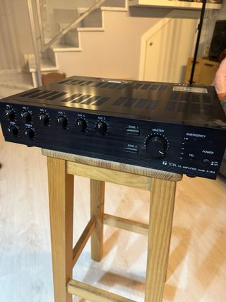 Amplificador profesional TOA modelo A-1812 (120W). Estado impecable, prácticamente sin uso. Funcionamiento 100% perfecto. Ideal para instalaciones de megafonía en tiendas, iglesias, academias, oficinas o bares. Salidas 100V y 4-16Ω. Marca japonesa de alta calidad y gran fiabilidad. Se puede probar sin compromiso en Dos Hermanas.