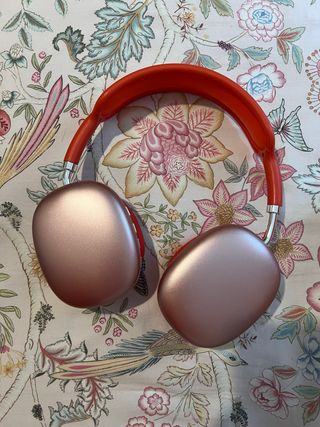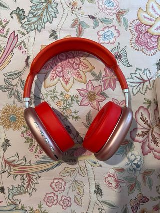 Cascos inalámbricos con un diseño elegante y moderno. - Acabado exterior en oro rosa. - Diadema en color rojo vibrante. - Conexión inalámbrica para mayor libertad de movimiento.