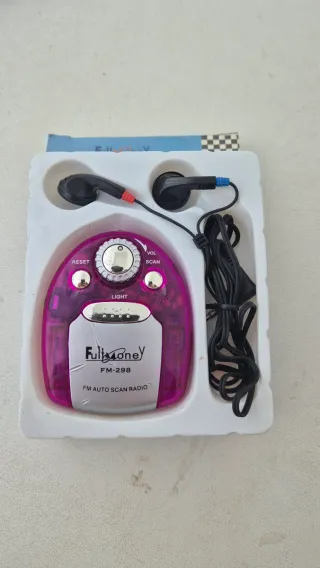 Mini radio portátil FM marca Full Money, modelo FM-298. Es compacta y fácil de llevar. - Color púrpura y plateado. - Función de escaneo automático de emisoras. - Botón de encendido/apagado y control de volumen. - Incluye función de luz. Visita mi Perfil !!! Puede ver cosas pueden Interesar