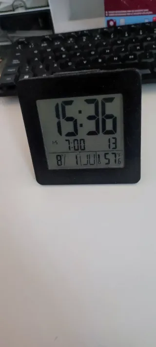 Despertador digital con pantalla clara. - Diseño moderno y compacto. - Funciones de alarma y calendario.
