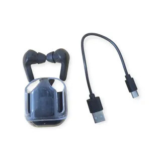 Auriculares inalámbricos con un diseño moderno y elegante. - Incluye estuche de carga. - Cable de carga USB plateado.