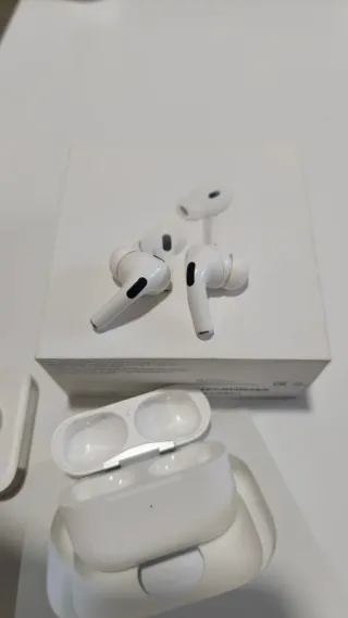 Auriculares inalámbricos AirPods Pro de segunda generación con conexión USB-C. - Estuche de carga un poco rayado por llevarlo siempre con funda - Auriculares con cancelación de ruido activa.
