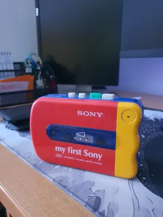 Reproductor de cassette Sony Walkman My First Sony. - Diseño retro en colores rojo y amarillo. - Sistema de limitador de volumen automático (AVLS).