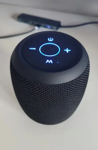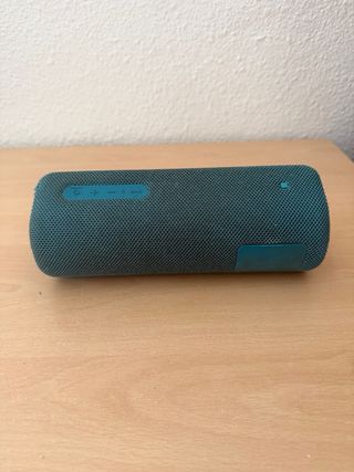 Altavoz portátil de color turquesa. - Diseño compacto y ligero. - Incluye cable de carga USB. Esta nuevo, ha sido usado en muy pocas ocasiones.