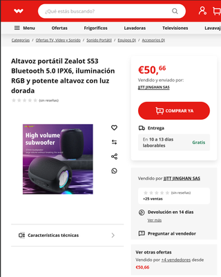 • Altavoz Portátil Zealot S53 Bluetooth
