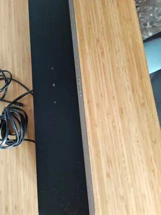 Barra de sonido Panasonic SC-HTB8 ✅ HDMI ARC ✅ Entrada óptica ✅ Bluetooth para conectar móvil ✅ Sonido claro y mejora notable respecto a altavoces de TV ✅ Diseño fino y elegante Tiene una pequeña rotura en la malla parte trasera apenas visible desde delante y que no afecta para nada a su funcionalidad. Tiene un sonido envolvente y espectacular