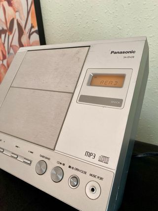 Mini cadena Panasonic SA-EN28 con reproductor de CD y radio. - Diseño plateado y blanco. - Compatible con MP3. Funcióna. Tiene marcas del uso, ver las fotos. Viene con sus cable de red y antena. En este precio se vende como no funcional, para evitar discuciones. Por esto no acepto devolución. Solo envío por Inpost, NO Correos. Ver también mis otros anuncios.
