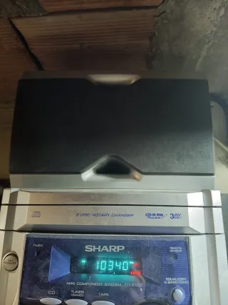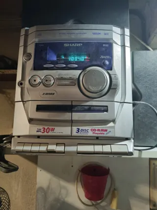 Mini cadena de música SHARP con reproductor de 3 CDs, radio y cassette. Ideal para disfrutar de tu música. - Carga frontal de 3 CDs. - Sintonizador de radio AM/FM. - Reproductor de cassette. - Función X-BASS para graves potentes. SE USA A DIARIO....