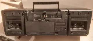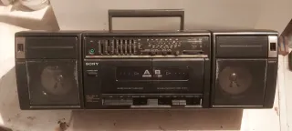 Radio casete portátil de la marca Sony. Años 90 Enciende pero no se escucha, cables de altavoces cortados, se vende económico para técnico que sepa repararlo. Modelo muy peculiar los altavoces van encajados y se pueden desmontar. - Diseño en color negro. - Modelo CFS-W410L.