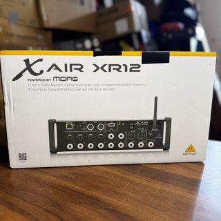 Mesa de mezclas Behringer X AIR XR12. Mezclador digital de 12 entradas para tabletas iPad / Android con 4 preamplificadores Midas programables, 8 entradas de línea, módulo Wifi integrado y grabador estéreo USB Mezclador digital de 12 entradas controlado por tableta iPad * / Android * para estudio y aplicación en vivo 4 preamplificadores de micrófono totalmente programables, diseñados por Midas y galardonados para una calidad de sonido audiófila Enrutador Wifi Tri-Mode integ - Conexión Ethernet para control remoto. - Puerto USB para reproducción y grabación. - Entradas XLR y jack. - Salidas MAIN L/R y AUX. - Antena Wi-Fi integrada.