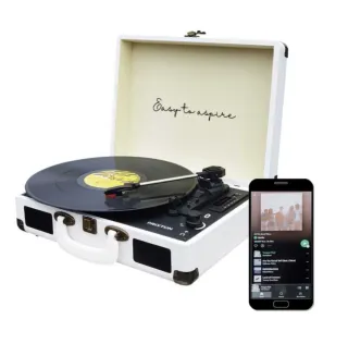 Tocadiscos portátil con un diseño clásico y elegante. Ideal para disfrutar de tu música. Comprado en PCCOMPONENTES en enero - Asa de transporte. - Altavoces integrados. - Diseño tipo maleta.