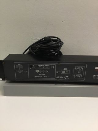 Procesador de sonido EL SAP-10 con conexión RCA. - Limitador de nivel. - Salida para amplificador de potencia. - Conexión para monitor remoto.