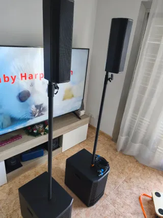 Sistema de altavoces profesional. - Altavoz de columna. - Subwoofer. - Cables de conexión incluidos. -se han usado solo en 2 ocasiones, son ultralivianos y suenan brutales! 800w de potencia c/u. Con dsp -vendo por no dar uso. -incluye sus fundas protectoras