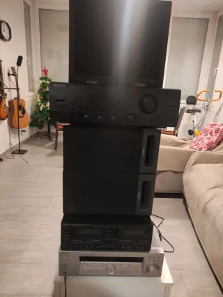 Sistema de sonido completo. - Amplificador Kenwood. - Altavoces. - Reproductor de audio.