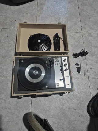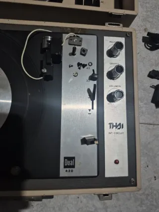 para desguace o para piezas, se puede arreglar..cambiando la pinza funcionaba muy bienTocadiscos antiguo de la marca Dual. Un clásico para los amantes de la música. - Diseño portátil en color beige y negro. - Plato giratorio para discos de vinilo.