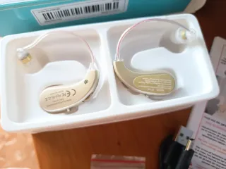Amplificador de sonido para mejorar la audición. - Diseño discreto y ergonómico. - Incluye cables de carga USB. - Viene con varios tapones para el oído de diferentes tamaños.