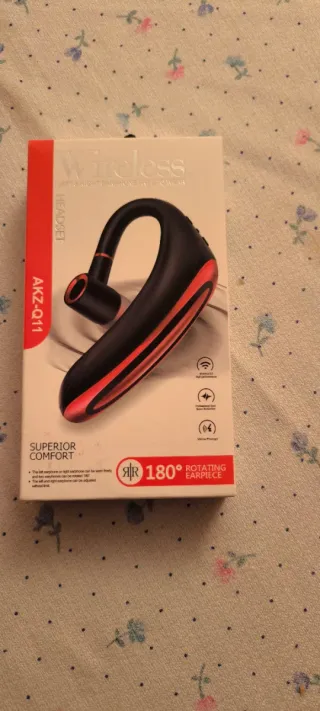 Auricular inalámbrico de manos libres con diseño ergonómico. - Modelo AKZ-Q11. - Color negro con detalles en rojo. - Diseño giratorio de 180° para el auricular. - Conexión inalámbrica. - Alta calidad de sonido.
