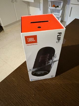 Altavoz portátil JBL Flip 6 en color negro. - Diseño compacto y resistente. - Sonido potente y envolvente. - Conectividad Bluetooth.