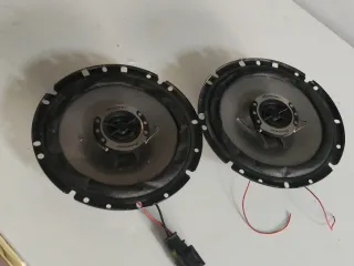 Par de altavoces JVC en color negro. - Diámetro aproximado de 17 cm medido con cinta métrica. - Conexiones de cableado incluidas.