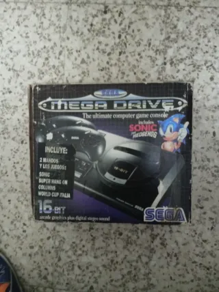 Venta en persona o previo pago por bizum. Por bizum añadir 10€ por gastos de envío. Probada y funcionando, podriamos probarla en mi casa si fuese necesario. Caja exterior en muy mal estado. Consola Sega Mega Drive en su caja original, con todos sus componentes. - Incluye dos mandos originales. - Incluye alimentacion y antena original. - Gráficos de arcade y sonido estéreo digital.