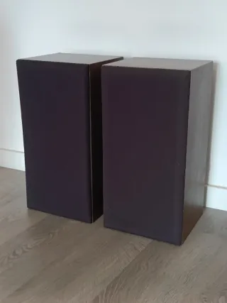 Pareja de altavoces BST H30 S de estilo vintage. - Diseño con acabado en madera. - Cubierta frontal de tela oscura. - Muy buen sonido. - 52x26x26 cm. - 8kg cada uno.