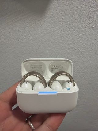 Auriculares inalámbricos Anker Soundcore AeroClip. - Diseño elegante en color blanco y dorado. - Carga a través de estuche.