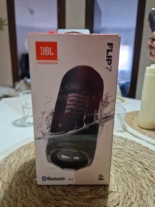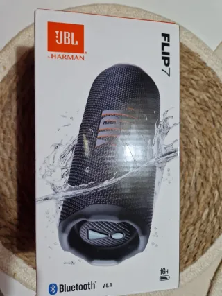 Altavoz portátil JBL Flip 7 en color negro. Disfruta de tu música con un sonido potente y diseño resistente. - Conectividad Bluetooth v5.4. - Autonomía de hasta 16 horas. Negociable