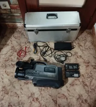Videocámara profesional Panasonic M9000, formato S-VHS y VHS, muy completa y con todos sus accesorios originales. Incluye: Maletín rígido de transporte y almacenamiento 2 baterías (Panasonic y Hama) Cargador de baterías Cables de vídeo y sonido Micrófono integrado Óptica con zoom digital x100 Estado: se desconoce si funciona, se vende tal cual aparece en las fotos, como cámara vintage, coleccionismo, decoración o para piezas. Medidas y detalles se pueden ver en las fotografías. #videocamara #panasonic #svhs #vhs #retro #vintage #camcorder #coleccionismo #electronica #audiovisual #ochentas #noventas #grabacion