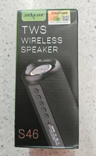 Altavoz inalámbrico portátil Zealot S46. - Modelo: S46 - Tecnología TWS (True Wireless Stereo) - Subwoofer - Conexión inalámbrica Bluetooth - 10x10W - Batería 1800 mAh (8 horas tiempo de reproducción) - Diseño moderno y compacto (18x8 cm). - Impermeable - A estrenar. * Si és entrega en mano Hospitalet barrio Sant Josep.