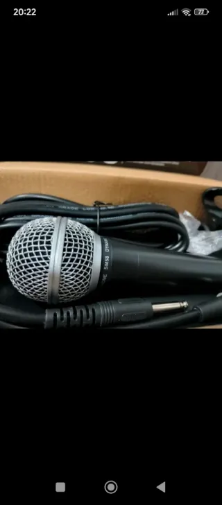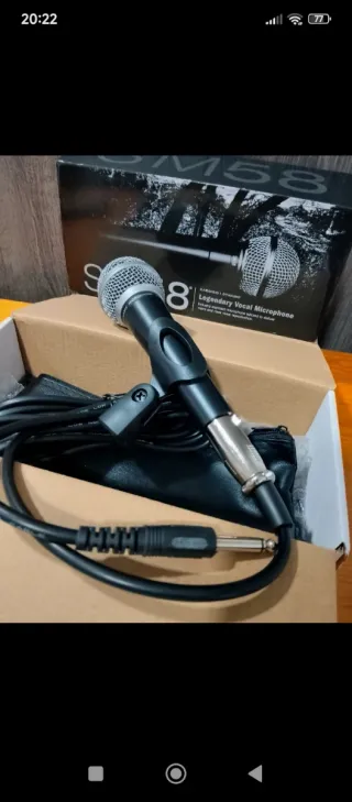 Micrófono vocal legendario SM58 de la marca Dynamic. Ideal para voces en directo y grabaciones. (Similar a una marca reconocida). - Diseño robusto y duradero. - Rejilla de acero endurecido. - Incluye funda y cable.