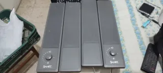 Altavoces activos SMART SBA V en color gris. Son altavoces de tipo torre, ideales para complementar tu equipo de sonido. - Diseño vertical y estilizado. - Acabado en color gris. - Marca SMART. Funcionan bien, solo que uno de los activos la rosca no hace el click de encendido apagado.
