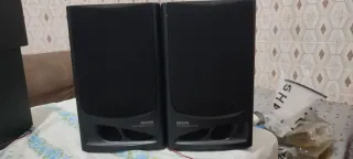 Par de altavoces Sanyo en color negro. - Diseño compacto y elegante. - Ideales para complementar tu equipo de sonido.