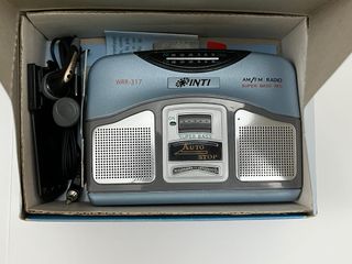 Radio cassette grabadora estéreo de la marca INTI, modelo WRR-317. Un dispositivo compacto con sintonizador AM/FM y función de super bass. - Diseño en color gris y azul. - Incluye sintonizador AM-FM. - Función Super Bass. - Modelo WRR-317.