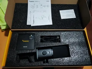 Vendo este micrófono nuevo sin usar debido a que me regalaron otro mejor, y para que esté pillando polvo prefiero venderlo. Micrófono dinámico inalámbrico Maono PD100W con brazo. - Modelo PD100W. - Micrófono dinámico inalámbrico. - Incluye brazo articulado.
