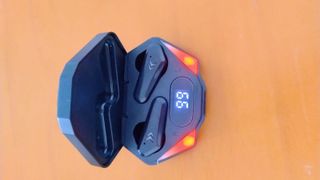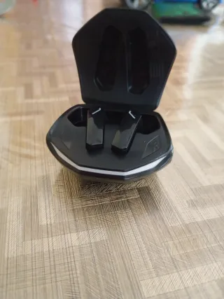 Audífonos Bluetooth en perfecto estado, con un diseño moderno y llamativo. - Diseño angular y futurista. - Propiedades inalámbricas: inalámbrico - Características de la batería: Batería recargable - Batería recargable: Batería de litio-polímero - Capacidad de la batería (mAh): 150MAh - Puerto de carga del producto: Carga de puerto tipo C - ¿Incluye un cargador?: No - Potencia nominal máxima: 5W - Potencia nominal mínima: 2.5W - Modo de alimentación: Carga USB