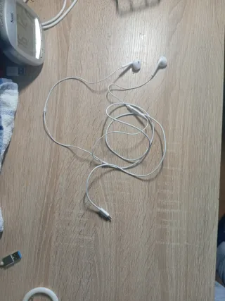 Auriculares de la marca Apple con conexión USB-C. - Diseño ergonómico. - Cable blanco.