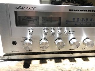 Receptor estéreo Marantz modelo 1530. - Diseño frontal plateado. - Indicadores de sintonización AM/FM. - Controles de volumen, balance, graves, medios y agudos. Para REPARAR