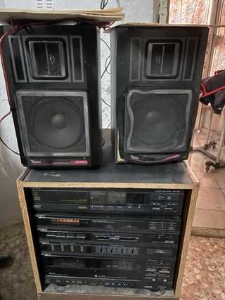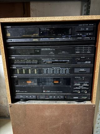 Equipo de sonido estéreo compacto de la marca Sony, ideal para disfrutar de tu música. - Reproductor de CD. - Doble pletina de casete. - Sintonizador de radio. - Ecualizador gráfico. - Altavoces (No Sony)