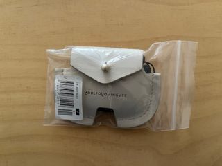 Funda de piel para AirPods de Adolfo Domínguez en color beige. - Cierre con botón a presión. - Costuras detalladas. - Logo de la marca grabado. -Cordón piel negro para colgar.