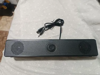 Barra de sonido compacta y elegante, ideal para mejorar el audio de tu televisor o ordenador. Su diseño moderno se adapta a cualquier espacio. - Conexión USB y jack de 3.5mm. - Altavoces integrados.