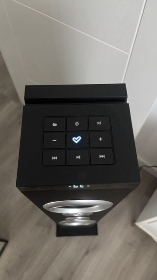 Torre de sonido Energy Sistem en color negro. Un altavoz elegante y potente para tu hogar. - Diseño vertical y moderno. - Acabado en negro brillante. - Sonido potente. - Regulador de TREBLE y BASS. - 100-240V/50-60Hz - Tiene algunos años pero funciona igual que el primer día.