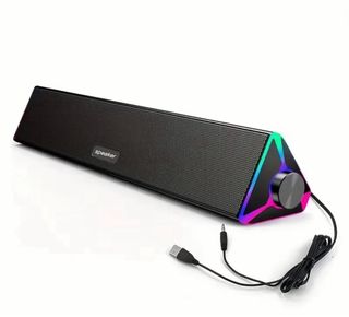 Altavoz tipo barra de sonido con iluminación LED RGB. - Diseño moderno y elegante. - Conexión USB y jack de 3.5mm. - Control de volumen giratorio.