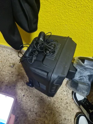 Parlante portátil con micrófono incluido. Ideal para llevar tu música a todas partes. VENTA POR MUDANZA - Diseño moderno en color azul y negro. - Incluye micrófono. - Correa para facilitar el transporte.