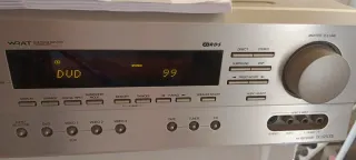 Amplificador AV Onkyo TX-SR500E en color plata. Un equipo de sonido versátil para tu entretenimiento. - Múltiples modos de sonido: Direct, Stereo, Surround, DSP. - Ajustes personalizables: Preset/Adjust, Audio Adjust, Speaker Adjust. - Entradas de audio/vídeo: DVD, Video 1, Video 2, Video 3, VCR, Tape, Tuner, CD. - Conexiones traseras: Video 3 Input, 5 Video, Video, L-Audio-R. - Control de volumen maestro. El estado es como nuevo y muy poco uso.